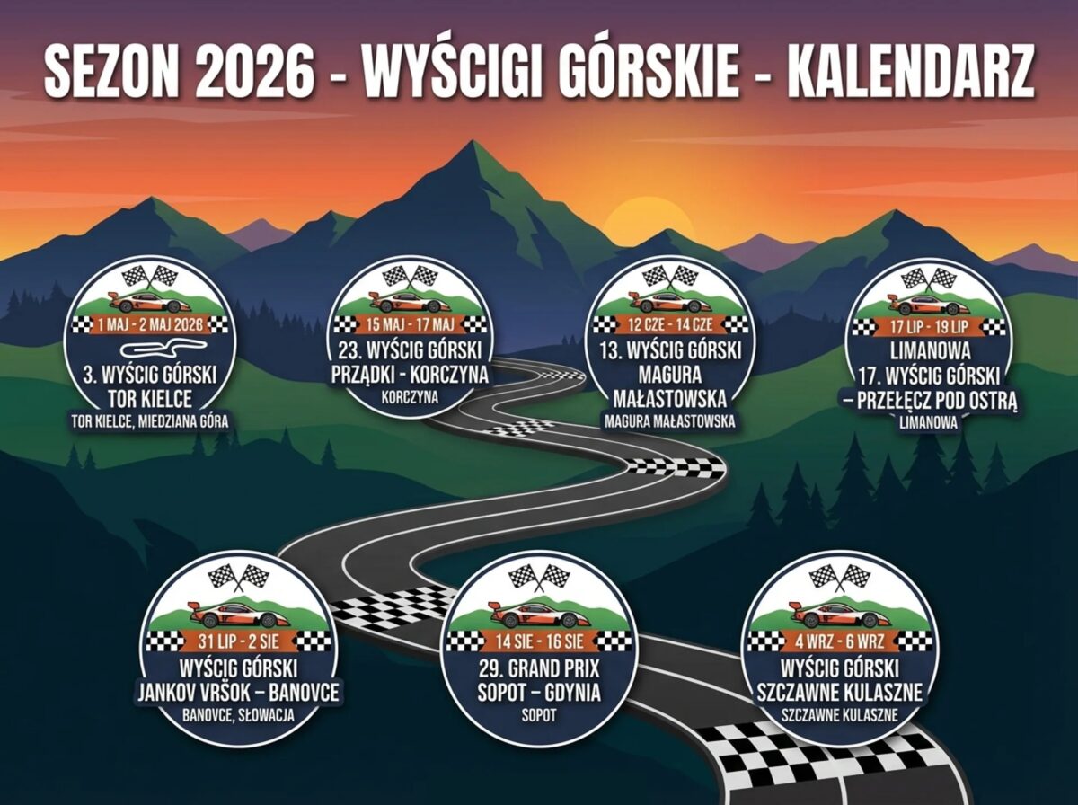 Dla zawodników to sezon rozpisany od końcówki kwietnia do początku września. Dla kibiców to z kolei bardzo dobry układ: kilka najbardziej rozpoznawalnych tras w polskich wyścigach górskich wraca do kalendarza, w tym Limanowa – Przełęcz pod Ostrą i Grand Prix Sopot – Gdynia.